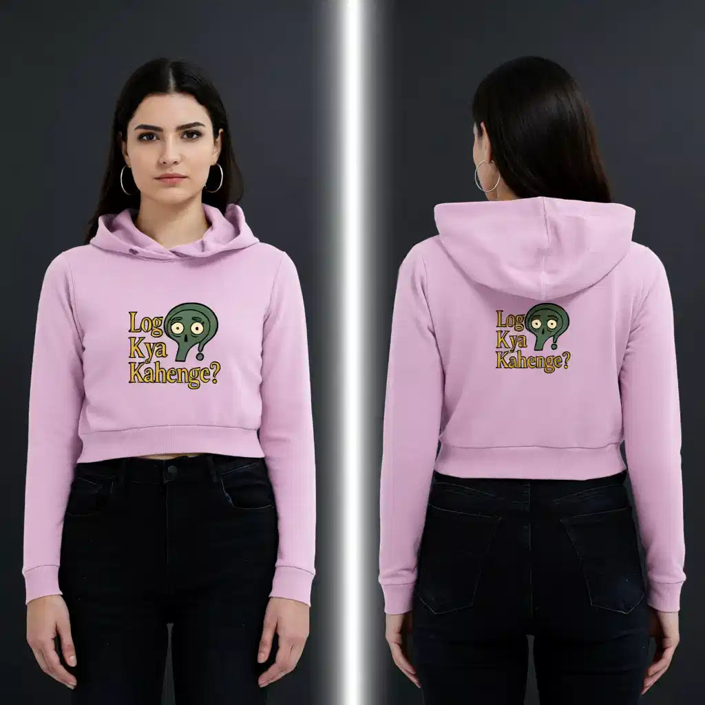 1x "Log Kya Kahenge" Female Cropped Hoodie (100% Cotton, 320 GSM)