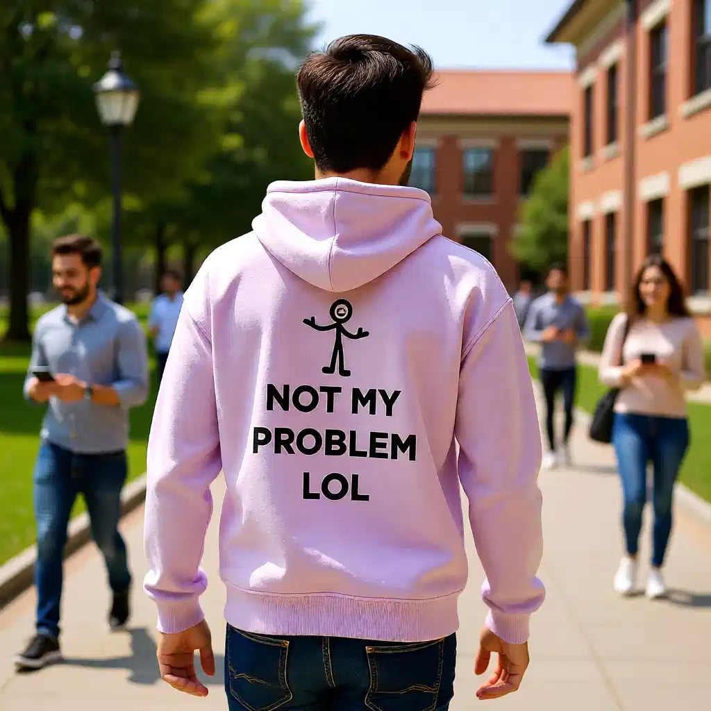 This unisex oversized hoodie boldly declares "Not My Problem LOL" with prints on the back and front pocket, perfect for Gen Z’s carefree attitude. Made from soft, warm cotton fabric, it offers cozy comfort with a relaxed fit—ideal for gifting or self-expression.